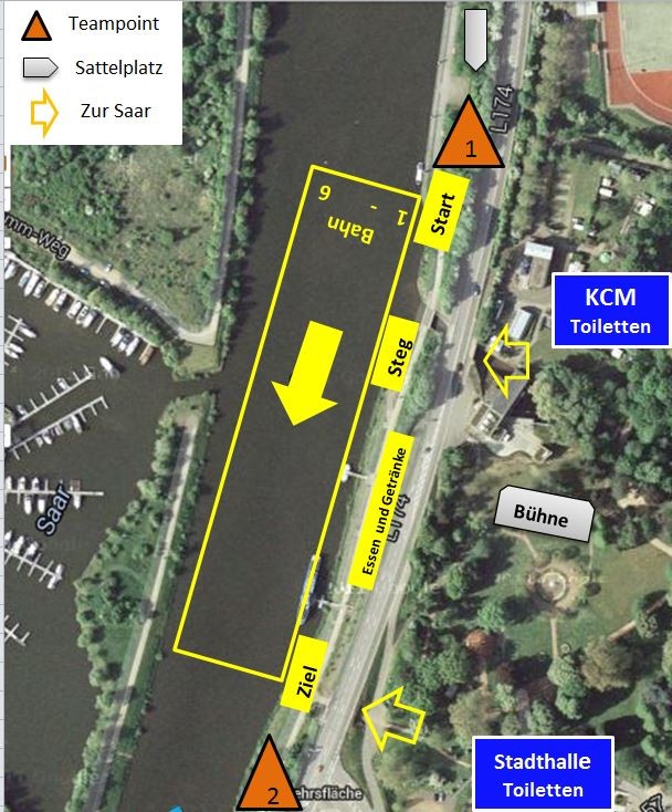 Teampoints liegen vor dem Start und hinter dem Ziel.